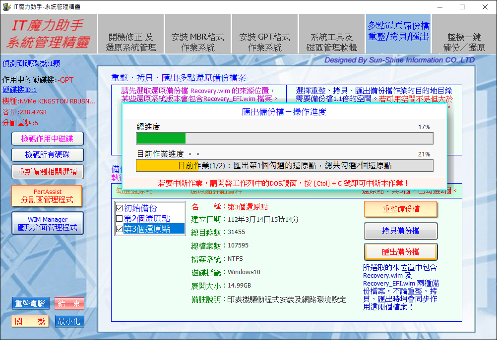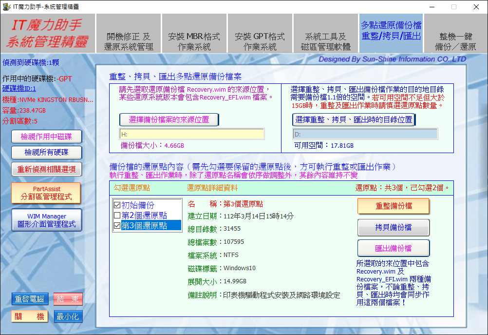 同時也提供匯出備份檔功能,以產生一個保留所需還原點的備份檔案。