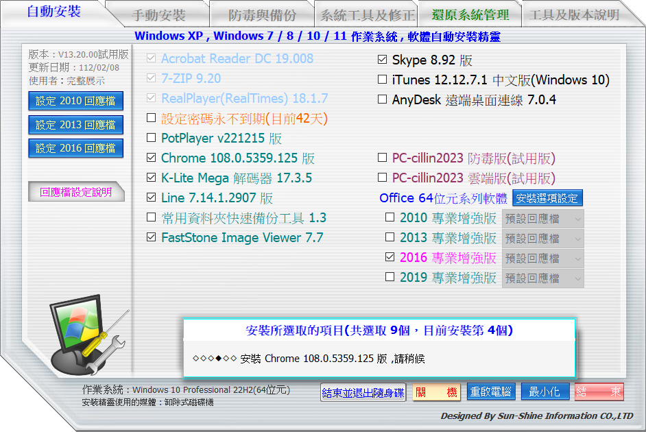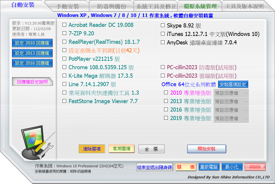 勾選所需安裝軟體,按下【開始安裝】按鈕,全部自動安裝完成。