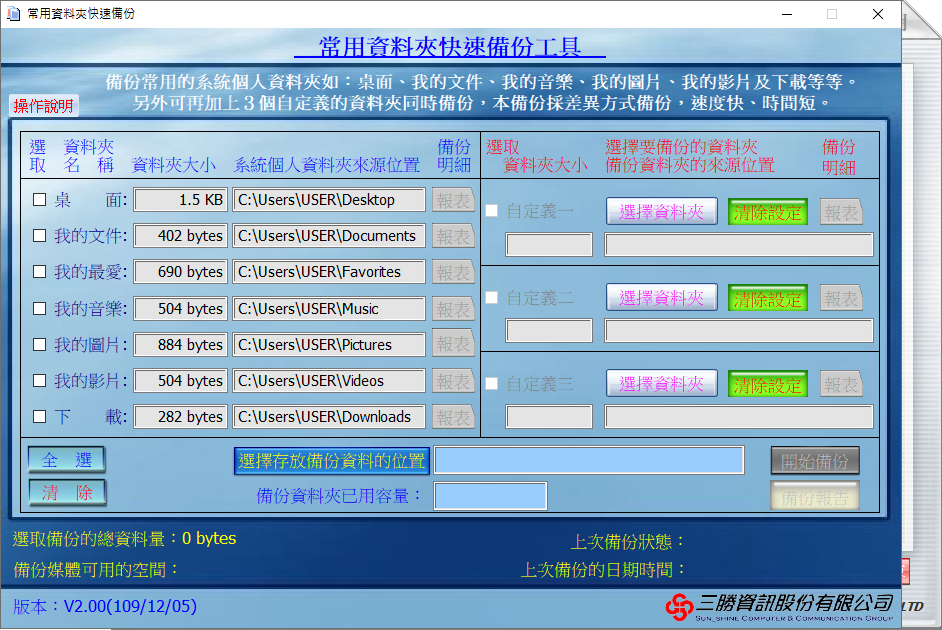可安裝在系統的常用資料夾快速備份工具,一鍵備份。
